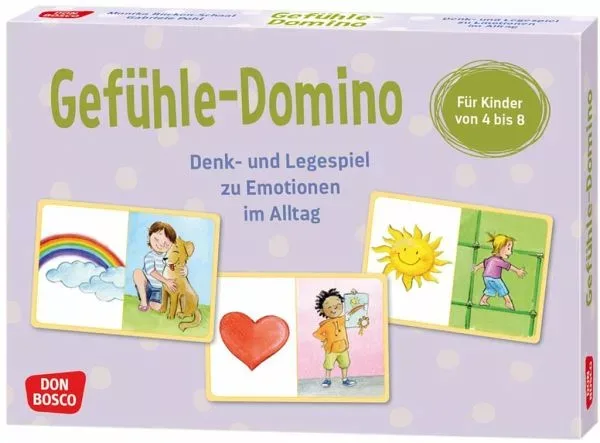 Freude, Angst und Neugier: Gefühle gibt es viele! Gefühle sind vielfältig und individuell! Dieses Dominospiel ermöglicht Gesprächsanlässe über ganz unterschiedliche Gefühle, in denen sich Kinder wiederfinden können. Die 30 Bildkarten, die auf der einen Seite jeweils ein Gefühle-Symbol und auf der anderen Seite eine Szene aus dem Kindergartenalltag zeigen, bieten völlig freie Kombinationsmöglichkeiten und machen dadurch das Spiel lebendig und immer wieder neu und spannend. So können die Kinder Gefühle auf spielerische Art kennenlernen… sowohl bei sich als auch bei anderen! Das Begleitheft enthält die Spielanweisung und viele weitere pädagogische Hinweise zu Gefühlen bei Kindern